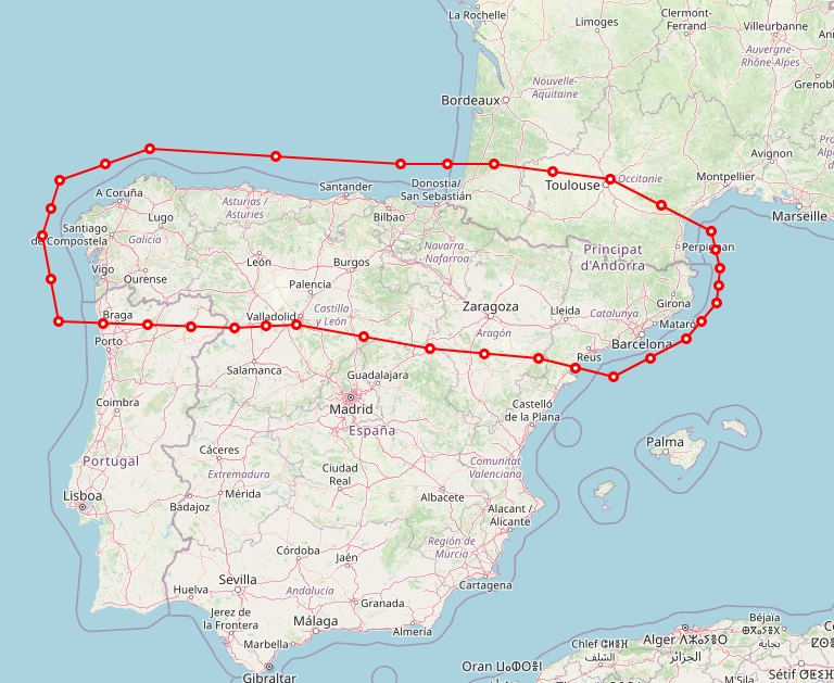 On the right, click the image to see a comparison of the Canary Islands, or here's a view of the area near Santander, part of the "Picos" tour.